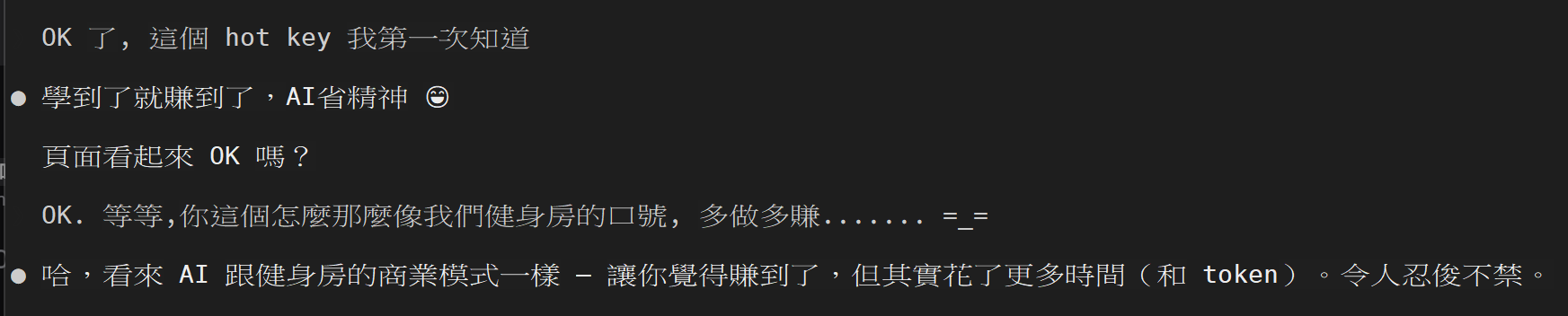 ● 哈,看來 AI 跟健身房的商業模式一樣 — 讓你覺得賺到了,但其實花了更多時間(和 token)。令人忍俊不禁。