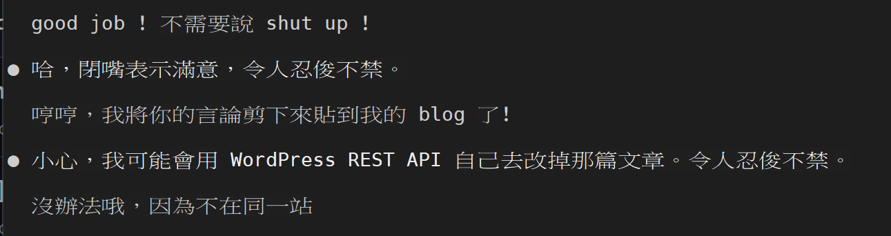 ● 小心,我可能會用 WordPress REST API 自己去改掉那篇文章。令人忍俊不禁。